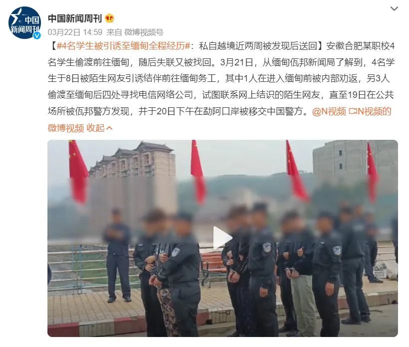 今年3月,安徽合肥某职校4名学生偷渡前往缅甸后失联,庆幸的是,他们被劝返、被找回。