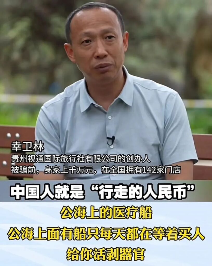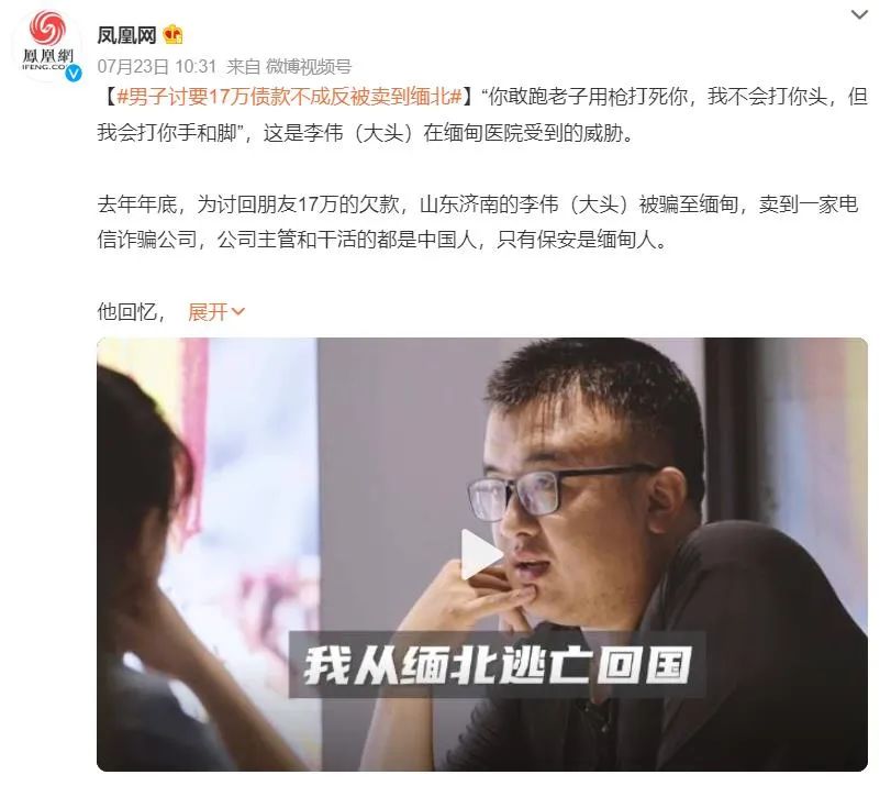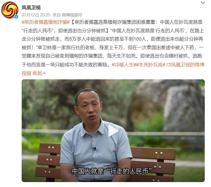 幸卫林是一名商人,身家上千万,但在2022年8月外出泰国考察时,被所谓的合作伙伴下药迷晕、以30万被卖到缅甸妙瓦底的电信诈骗园区。(据凤凰卫视报道)
